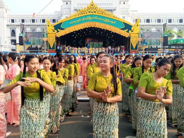 在泼水节期间,仰光市政厅前会搭建起巨大的泼水台,举办各种歌舞表演和泼水活动。来自全国各地的游客都会来到仰光,感受泼水节的欢乐气氛。