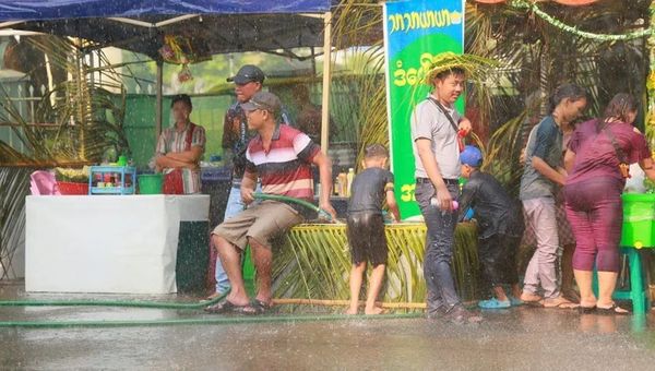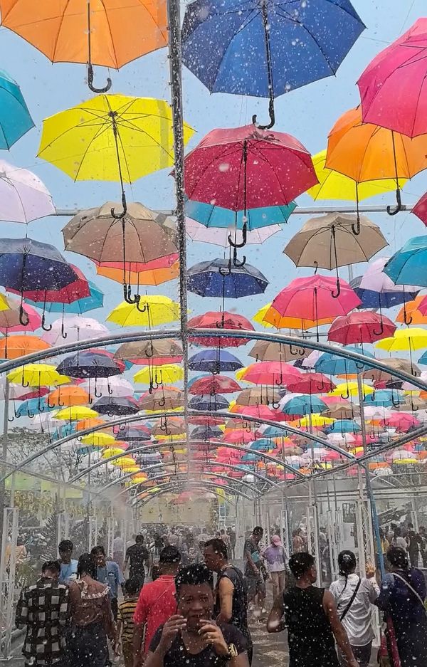 在泼水节期间,人们会用各种各样的容器泼水,包括水枪、水桶、甚至是大象的鼻子!