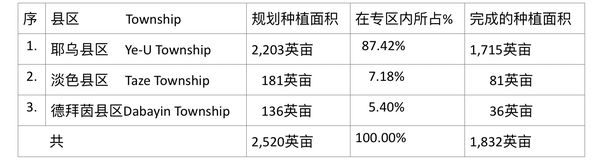 耶乌专区内的耶乌、淡色(Taze)及德拜茵(Dabayin)三县区,在2023—24财政年度的冬作物种植季节期间,规划种植的洋葱面积及目前完成的种植面积如下表: