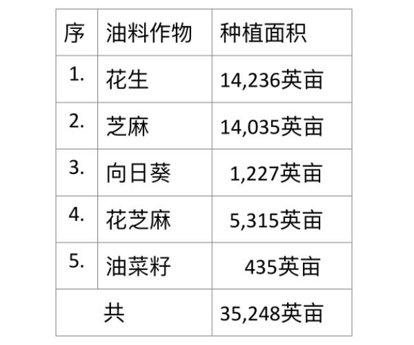 遵纳县区在过去的冬作物种植季节中种植的各种油料作物如下表: