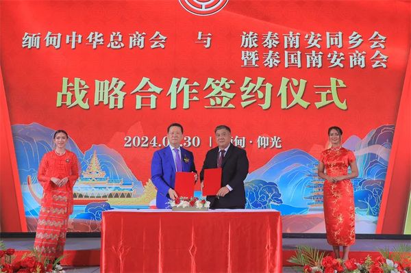 为进一步加强全球华商的交流与合作,缅甸中华总商会还在现场与旅泰南安同乡会暨泰国南安商会、泰国闽商商会、新加坡华源会、云南省福建总商会、云南省德宏州福建商会、云南省厦门商会和等多家商会组织签署“战略合作协议”。