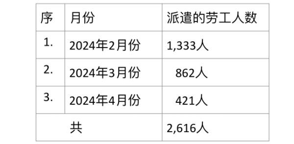 最近3个月缅甸向韩国派遣的劳工人数: