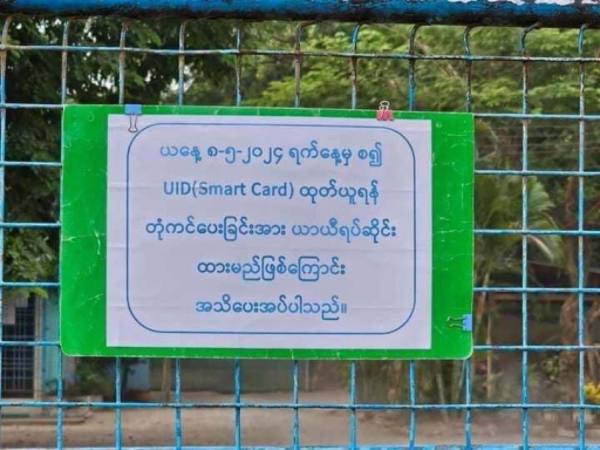 据泰缅边境妙瓦底市居民称,5月8日开始,暂时停止了UID智能身份卡预约办理服务。