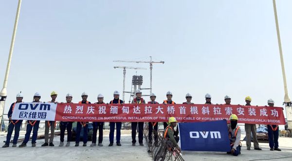 柳工欧维姆助力缅甸最大跨径钢绞线斜拉桥首根拉索挂设成功