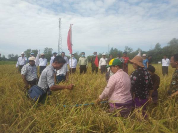 据5月9日出版的缅文《镜报》报导,仰光省茂比(Hmawbi)县区为增加稻谷单位产量,县区方面正在向农民们进行有关宣导工作。在5月8日上午8时,在Nyaung-gon村就向农民们讲解了在在2024—25雨季稻种植时期采用下种机(Seeder)进行稻谷种植的情况,同时对采用下种机进行种植的夏季稻模范田展开了收割工作。