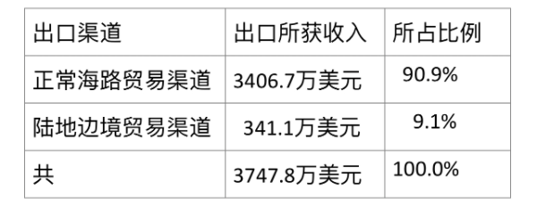在这样出口鹰嘴豆时,由正常海路贸易渠道出口获得3406.7万美元,由陆地边境贸易渠道出口获得341.1万美元,故这一财政年度出口鹰嘴豆获得的收入共为3747.8万美元。海路出口所获收入大约是边贸出口所获收入的十倍。