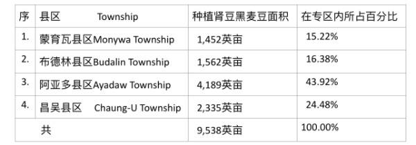 蒙育瓦专区内的各县区所种植的黑麦豆面积如下表: