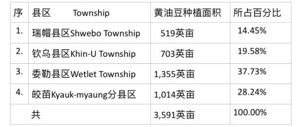 瑞帽专区内的各县区所种植的黄油豆面积如下表: