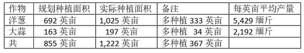在过去的2023—24财政年度冬作物种植季节期间,迪姜县区种植的洋葱及大蒜这两种厨房作物,自今年(2024年) 2月份开始采收工作,现在1,222英亩的这两种厨房作物的采收工作都已完成了。县区方面规划的这两种植物的种植面积、实际种植面积及每英亩作物的平均产量如下表: