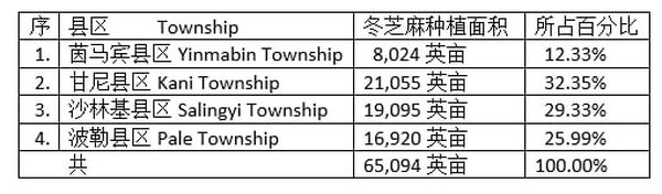 茵马宾专区内的各县区所种植的冬芝麻面积如下表: