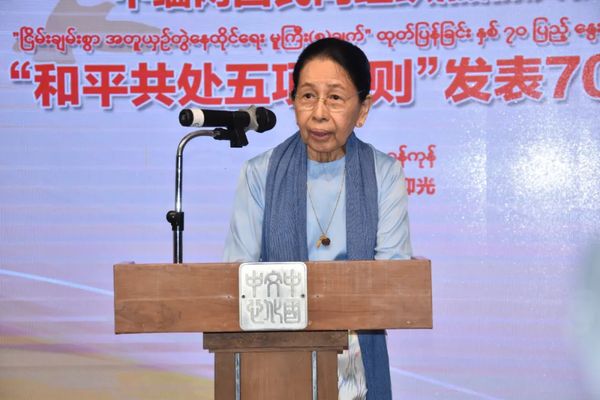 6月19日,中国和平发展基金会、仰光中国文化中心、缅中交流合作协会、仰光外国语大学在仰光共同举办纪念和平共处五项原则发表70周年活动。中国驻缅甸大使馆乔利参赞、缅甸首任总理吴努之女丹丹努出席并致辞,来自40多家中缅民间组织和企业、智库、媒体、高校的100余名代表参加。
