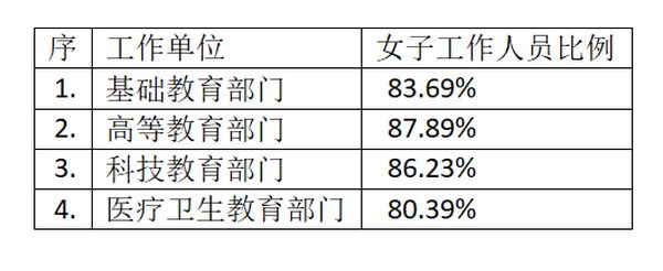 而在从事教育工作的行业中,女子的比例就更高了:
