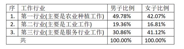 可以发现,在服务行业中工作的女子几乎占了能够工作女子总数的五分之二以上人数,这当中包括教育与卫生行业工作,女子在这方面 所发挥的作用是相当巨大的了。