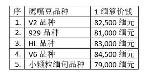 据7月11日出版的缅文《镜报》报导,近期马奎省帕科库(Pakokku)县区市场上,国内民众消费量甚高的鹰嘴豆每天都大量进入,除了帕科库县区内的乡村地区外,附近的密且(Myit-che)、甘马(Kan-ma)、棉(Myaing)及耶思久(Yesagyo)等县区的的乡村地区生产的鹰嘴豆也都大量涌进帕科库市场。各种品种的鹰嘴豆1缅箩价钱分别如下: