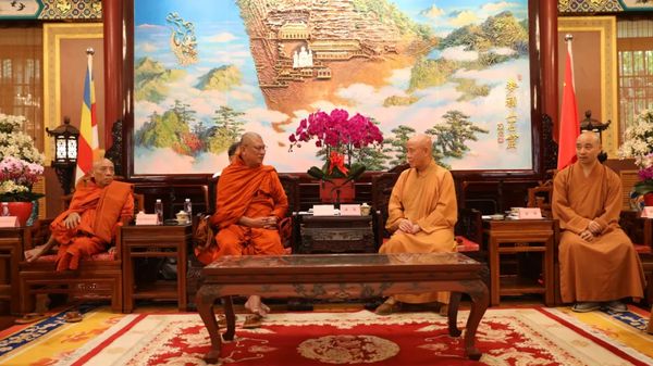 7月8日至14日,缅甸国家僧伽委员会常务执委巴丹达瓦德塔毕文达大师率佛教代表团一行15人访问中国北京、西安和昆明,参访灵光寺、雍和宫、法门寺等佛教圣地,同中国佛教界开展友好交流。