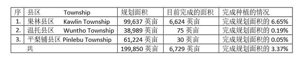 果林专区内的三个县区规划种植的雨季稻种植面积及目前完成的种植面积如下表: