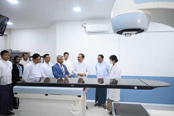 印度驻缅甸大使馆向仰光人民医院移交了治疗癌症患者所需的先进的远距钴放射疗机Bhabhatron 第二代和数字放射治疗模拟机。