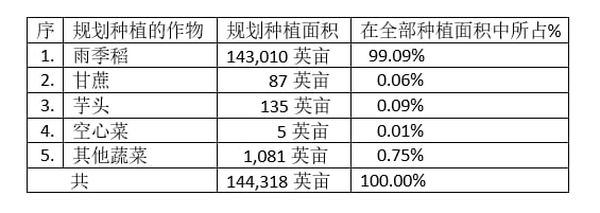 规划种植的各种雨作物中,以雨季稻为最主要,其种植面积就占了全部雨作物种植面积的99%。