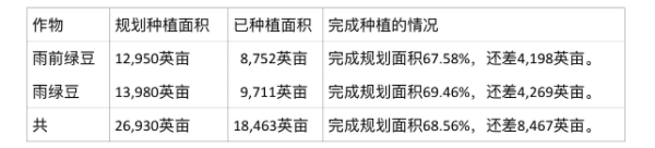 昌吴县区今年雨季绿豆种植情况: