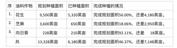 种植的油料作物中,不论是规划面积还是已完成的种植面积,花生都是位居第一。