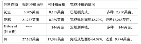 今年雨季明景县区规划种植的油料作物面积及目前完成的种植面积如下表: