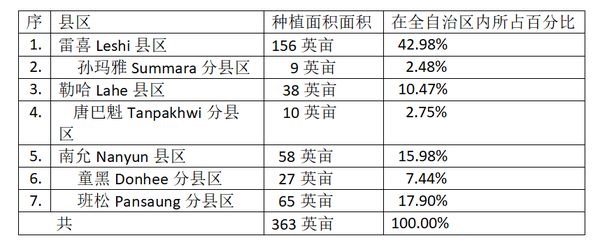 目前,那加民族自治区内的各县区、分县区完成种植的香蕉面积如下表: