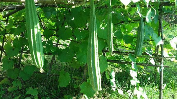 马圭省马圭县区乡村农民种植丝瓜作物获得好收益