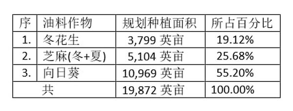 这些油料作物将在7个专区的14个县区中进行种植,主要种植的油料作物就是花生、芝麻及向日葵这三种油料作物。