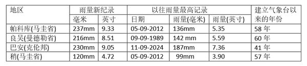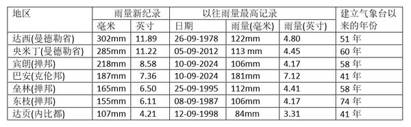 曼德勒省的达西(Tazi)、央米丁(Yamethin)、良吴(Nyaung-U)等县区,马圭省的帕科库(Pakokku)县区,内比都的达贡(Tatkon)县区,都是缅甸中部著名的干旱地区,现在这些地区在极短时间内下了这么多雨,创下日降雨量新纪录,怎不令人惊诧不已。特别是,现在的新雨量记录,高于旧雨量记录许多。例如,达西县区旧雨量最高记录为122毫米,现在猛增到302毫米,为旧最高记录的2倍多,央米丁县区、掸邦宾朗(Pinlaung)的情况都一样,这些地方的新雨量记录突然最高这么多,这些雨水所造成的祸害有多大也是可以想象的出来了。有人就说似乎是一年的雨水全部在一天之内就下完了,这么多雨水,大江大河小溪小沟都无法接受了,这些水四处泛滥也就不是一件奇怪的事了。