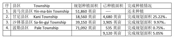 今年雨作物种植季节期间茵马宾专区内各县区规划种植的雨芝麻面积及目前完成种植工作的夏芝麻农田面积如下: