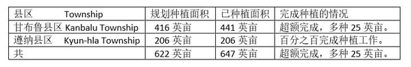 今年甘布鲁专区各县区规划种植的香蕉作物面积及已完成的种植面积如下表: