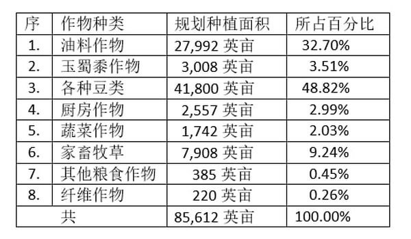 即将到来的冬作物种植季节期间本漂县区规划种植的各种作物面积如下: