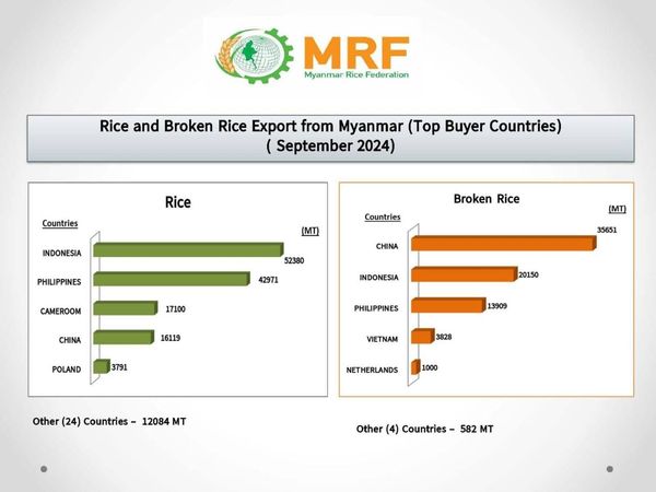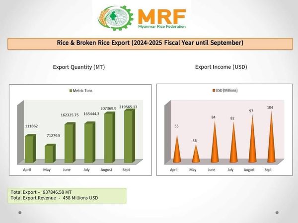 2024-2025财年,计划出口超过200万吨大米和碎米。缅甸每月向国外出口约20万吨至25万吨大米和碎米。据缅甸稻米联合会统计,每年定期出口约200万吨。