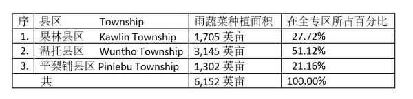 专区内的3个县区中,以温托县区的蔬菜种植面积为最多,占了全专区种植面积的一半以上。