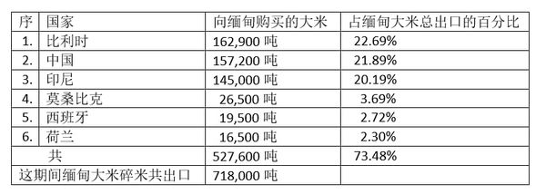 现财政年度5个月缅甸向比利时出口大米碎米最多