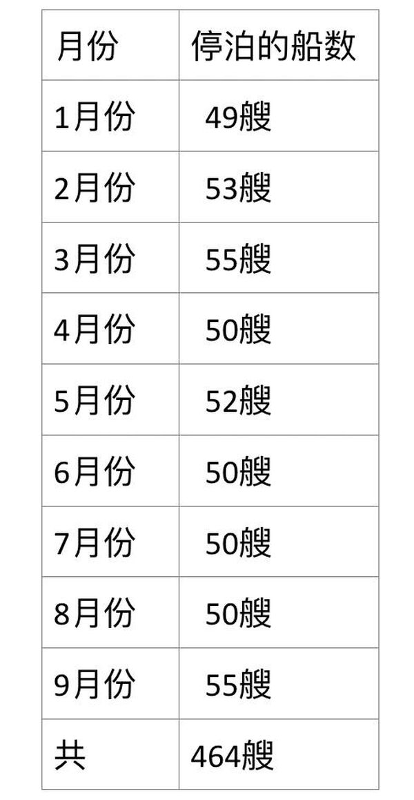 在这9个月期间,每个月进入仰光港口停泊的集装箱船数如下: