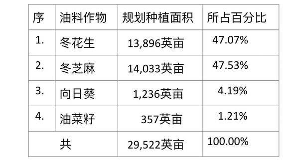 规划种植的油料作物中,以冬芝麻规划种植面积为最多,其次是冬花生,这两种油料作物的规划面积就占了所有油料作物规划面积的近九成五的比例。