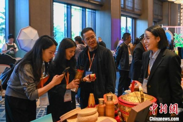 图为来自云南临沧的工艺品吸引与会嘉宾。中新社记者 李嘉娴 摄
