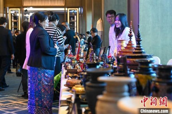 图为来自缅甸的工艺品吸引与会嘉宾。中新社记者 李嘉娴 摄