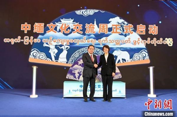 图为中共云南省委常委、宣传部部长曾艳(右),缅甸联邦共和国宣传部部长吴貌貌翁(左)共同启动中缅文化交流周。中新社记者 李嘉娴 摄