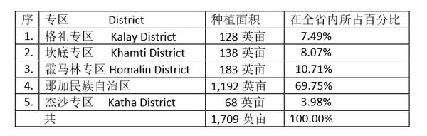 全省的14个专区地区(包括那加民族自治区在内)中,只有5个专区地区种植了这雨大豆作物。这当中以那加民族自治区种植面积为最多,占全省大豆种植面积三分之二以上的比例。