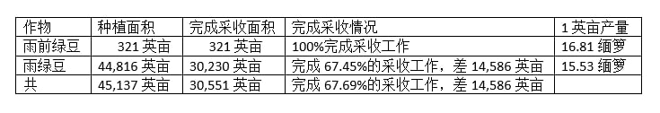 实皆省实皆县区在今年雨作物种植季节期间种植的雨绿豆作物中,已有30,551英亩完成采收工作。