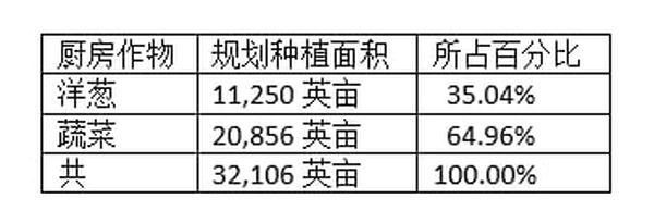 专区内冬季期间规划种植的洋葱作物及蔬菜作物如下表:
