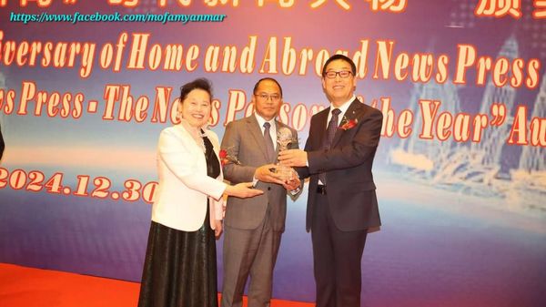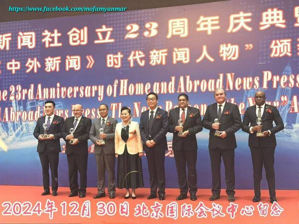 2024年12月30日,缅甸驻华大使吴丁貌瑞(ဦးတင်မောင်ဆွေ)出席了在北京国家会议中心举行的2024年度新闻人物颁奖典礼,该典礼由中外新闻社主办。