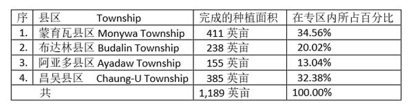 蒙育瓦专区内的四个县区目前完成的洋葱种植面积如下表: