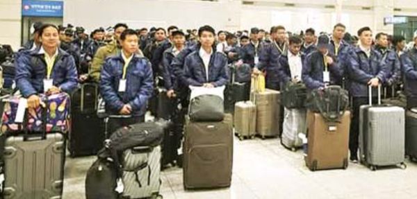 现在派遣的劳工中,属于工业生产行业中的新劳工人数有139人(19人为林业工人),建筑行业中的新劳工有8人,共147人。这一批劳工于2月12日上午由仰光国际机场搭乘缅甸国家航空公司UB 8301 (Charter Flight) 航班飞机飞往韩国。