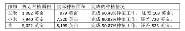 在这冬作物种植季节期间蒙育瓦县区规划种植的玉米小米种植面积及完成的种植面积如下表: