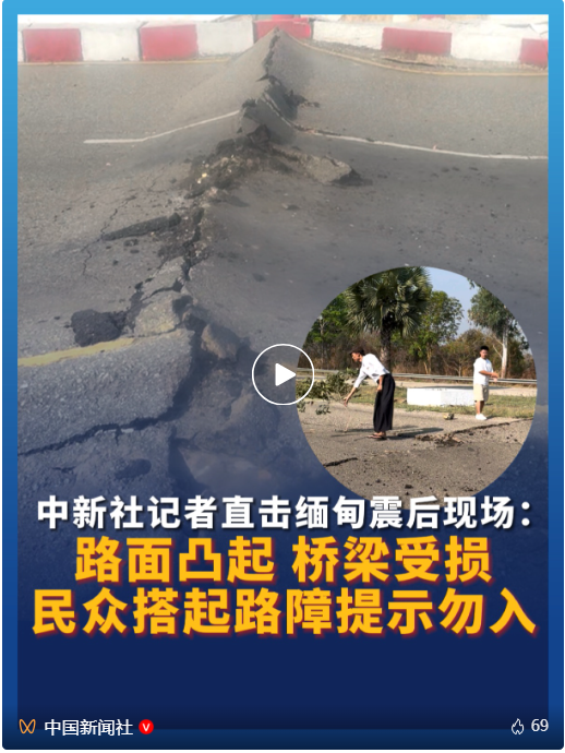 据中国新闻周刊,这是今年以来全球最强的地震,不仅造成缅甸曼德勒地区重大伤亡,其冲击波甚至波及700公里外的泰国曼谷和中国云南省。英国剑桥大学地震学家詹姆斯·杰克逊形容,这场强震“如同一把巨刀切入地球”。