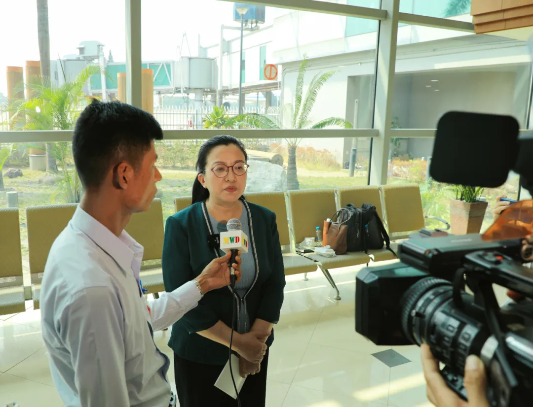 3月31日下午,马珈大使在仰光国际机场就缅甸3•28大地震灾情和中国对缅抗震救灾援助接受央视总台、人民日报、环球时报、缅甸妙瓦底电视台等媒体采访。