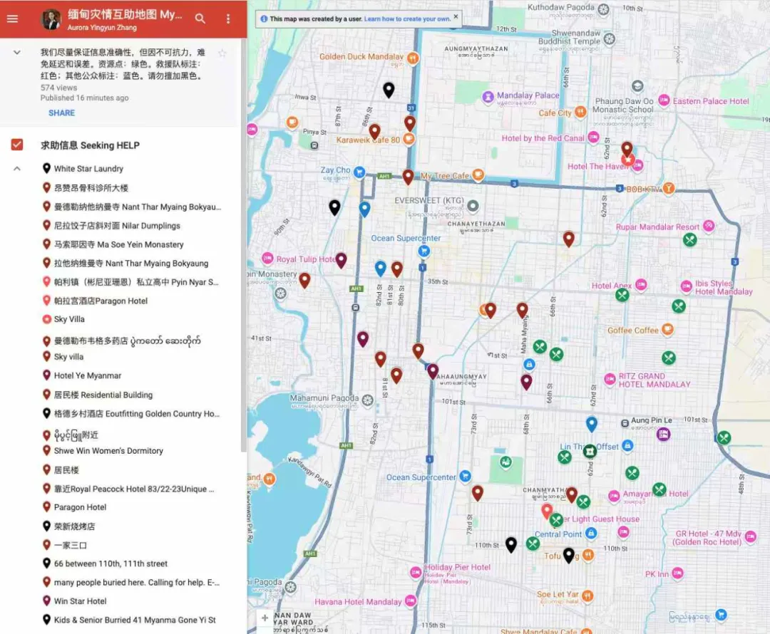 在缅中国机构、企业和志愿者自发深度参与救灾。中国乡村发展基金会缅甸办公室在曼德勒和内比都向1000户受灾民众发放生活物资。缅甸中国企业商会募集了10亿缅币善款、15亿缅币物资,正陆续送到灾民手中。中信缅甸等企业也积极向灾民提供急需的生活物资。中资企业员工主动担任志愿者,提供翻译、后勤等服务保障。中国大学基于DeepSeek紧急开发中缅英互译系统,遍布全球的中国志愿者自发收集求救信息,制作中缅英三语灾情动态地图,为救援队提供信息支持。